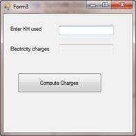 Create a C# Form with a textbox to enter Kwh used, a read-only textbox to display the electricity charges, and a button to compute the charges. The Kwh used could be a number with decimals.