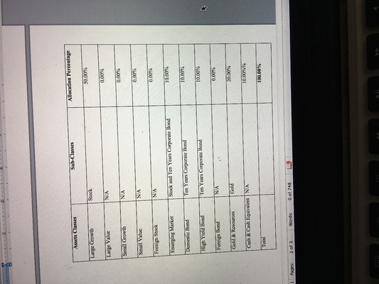 2. Calculate approximate percentages and dollar amounts you will invest in the subcategories listed in the sample asset allocation table from the questionnaire. (i.e. large equities, high yield bonds…) Again, 100% = $500,000