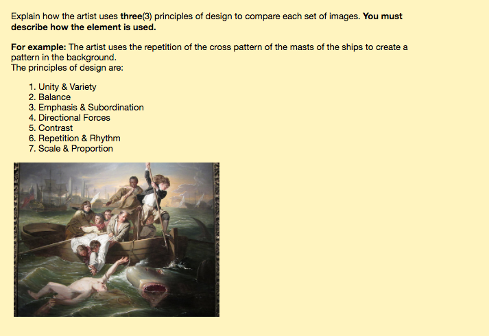 Explain haw the artist uses each at the SEVEN {El visual elements in the artworks belew. lndieete
