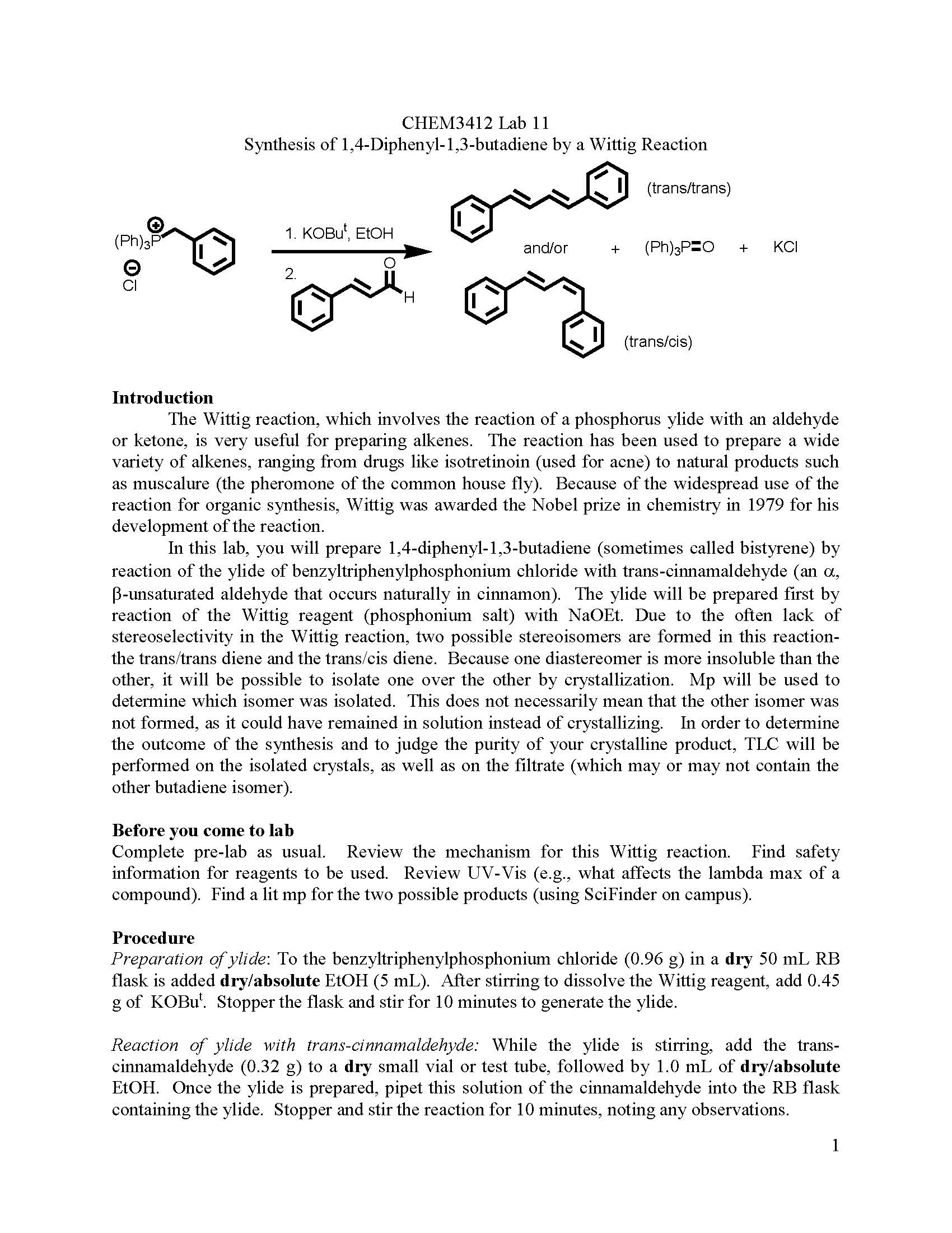 other butadiene isomer). Before you come to lab Complete pre-lab as usual. Review the mechanism for this Wittig reaction. Find safety