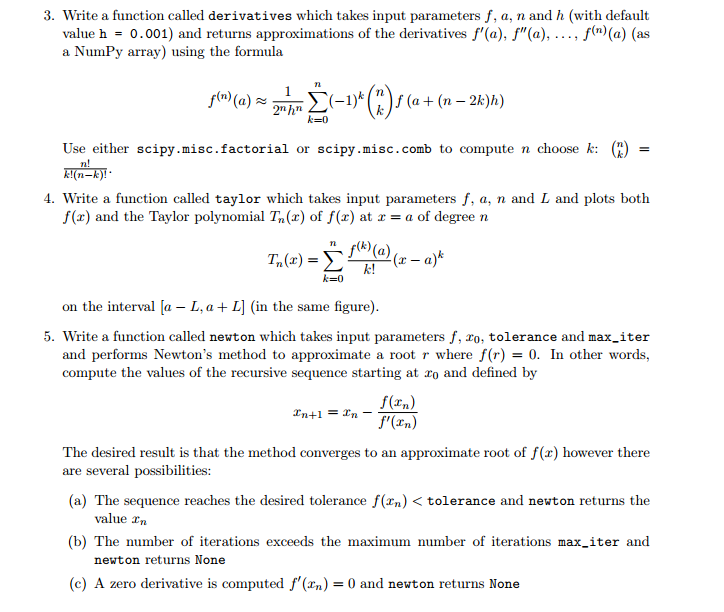 k=o Use either scipymisciaotorial or soipy.miso.comb to compute a choose it: (E) = n! 4. 1Write a function called taylor which takes input parameters f? c... 1r: and L and plots hoth