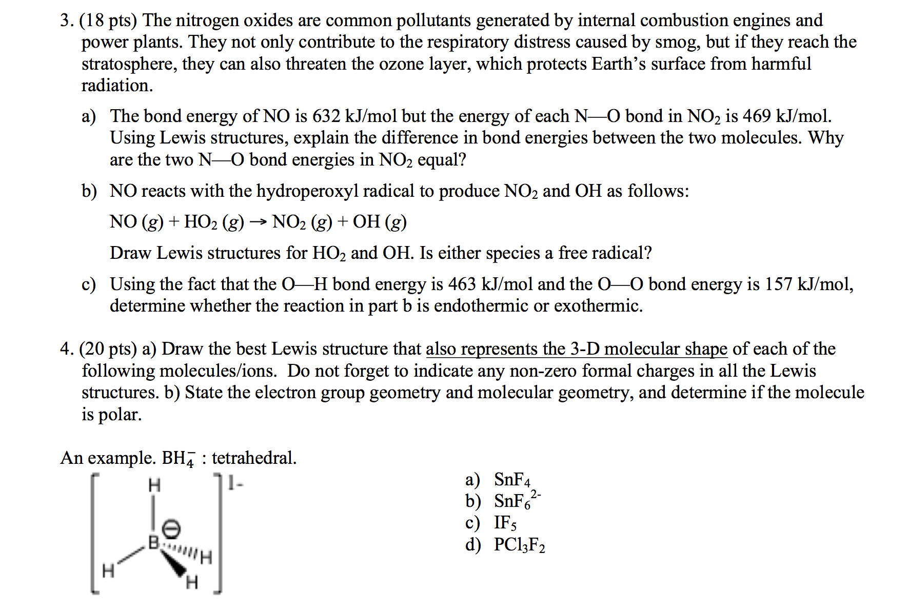Total: 100 pts. 1. (8 pts) The neutral OH molecule is the most important oxidant in the troposphere, and has been a) b) implicated in certain ozone-destroying processes, which take place in the stratosphere. Electron affinity can be defined for molecules just as it is defined for single atoms. Write a