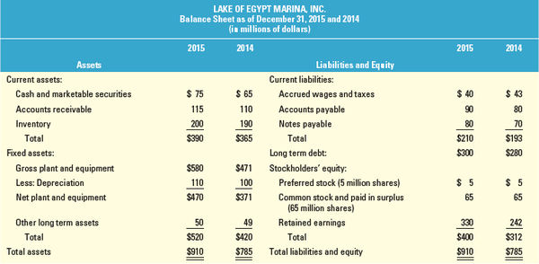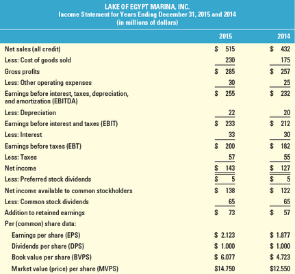 1) Spreading the Financial Statements:Spread the balance sheets and income statements of Lake of Egypt Marina, Inc., for 2015 and 2014. (LG3-6)