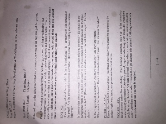Instructor has written critiques on my paper in red as seen in the writing. Attached is the assignment instructions and my in class write. PLEASE FOLLOW RINSTRUCTORS REMARKS.