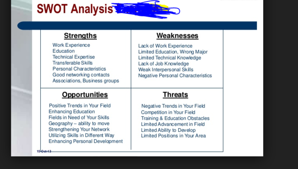 To prepare for this Assignment, review the Learning Resources for the week, including the “Introduction to the Doctoral Journey” media, and consider the various aspects of your life, including your professional and personal commitments, your goals and reasons for pursuing your DBA degree, how you manage your time, how you handle stress and change, how prepared you feel to begin your doctoral journey, etc. Use the Personal SWOT Analysis Worksheet Template within the Learning Resources to complete this self-assessment. Consider using the tips mentioned in the “Managing from the Inside Out” video prior to the completion of your Self-Assessment paper.