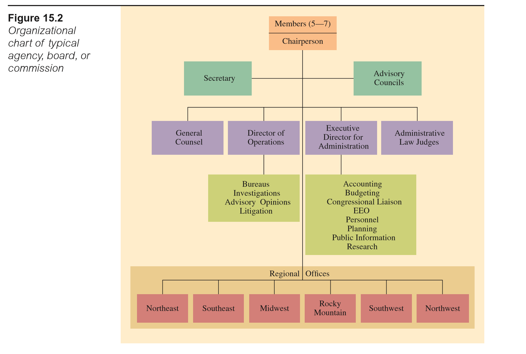 1. See Figure 15.2 , a typical organizational chart for an agency, board, or commission.