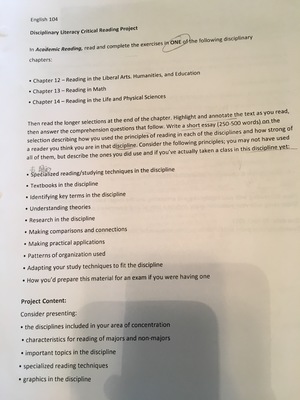 Write a short essay(250-500 words) on the selection describing how you used the principles of reading in each of the disciplines and how strong of a reader you think you are in that discipline. Please follow the requirements below in picture.