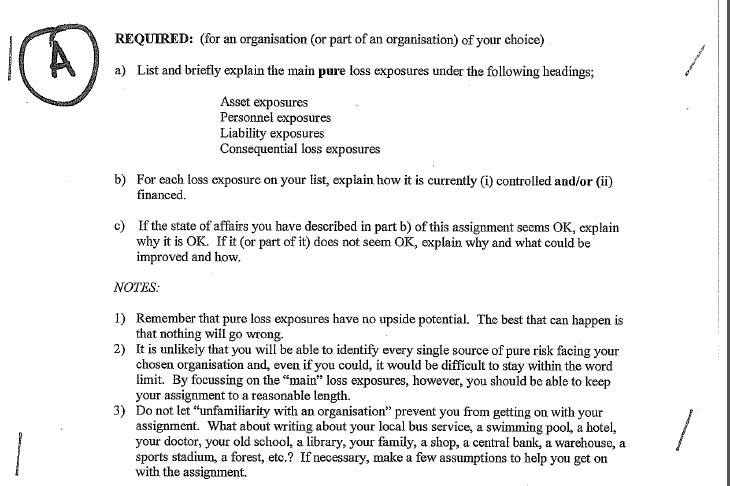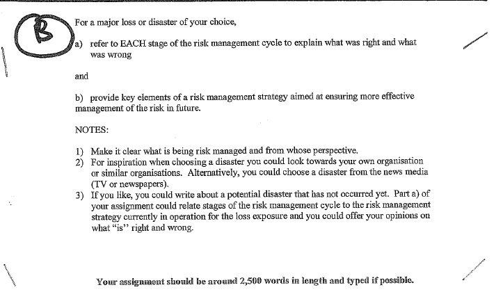 Hi, Please find the attached files. Each file is a seperate question that its word count should be around 1500 words. So a total of 3000 words Please use the following as refrences:Â S.E. Harrington and G. R. Niehaus, Risk Management and Insurance, 2nd edition, McGraw Hill International, 2004 [HN] C A Williams, M L Smith, P C Young, Risk Management and Insurance, 7th edition, McGraw Hill, 1995 [WSY7] C A Williams, M L Smith, P C Young, Risk Management and Insurance, 8th edition, McGraw Hill, 1998, [WSY8] Kind Regards, Nayoo