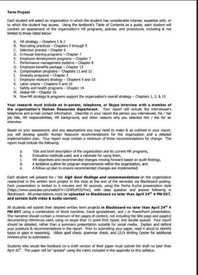 Content - 1.2 - Bullet lists and large graphics do not count towards meeting the page count requirements. Also, the paper lacks the depth expected of a term project for a graduate course at LIU. For example, on page 11 the interviewee states that the turnover rate is 1.0%. I find that extremely hard to believe! There should be a discussion about turnover rates in industry and in the US to compare and contrast with American Tractor, as well as a discussion about what factors in the company have led to this amazingly low turnover rate! Furthermore, the paper lacks the essential requirements for the assignment as outlined in the attached excerpt from the syllabus. For example, the paper contains only one recommendation for change. Three are required. In addition, that recommendation for change is not fully explored in the paper. Why are you recommending this change related to data security and EU Directives? How does this link to the other content in the report? Is American Tractor a global business? Are they having issues in Europe? There needs to be a stronger connection in the paper to build the case for this recommendation.