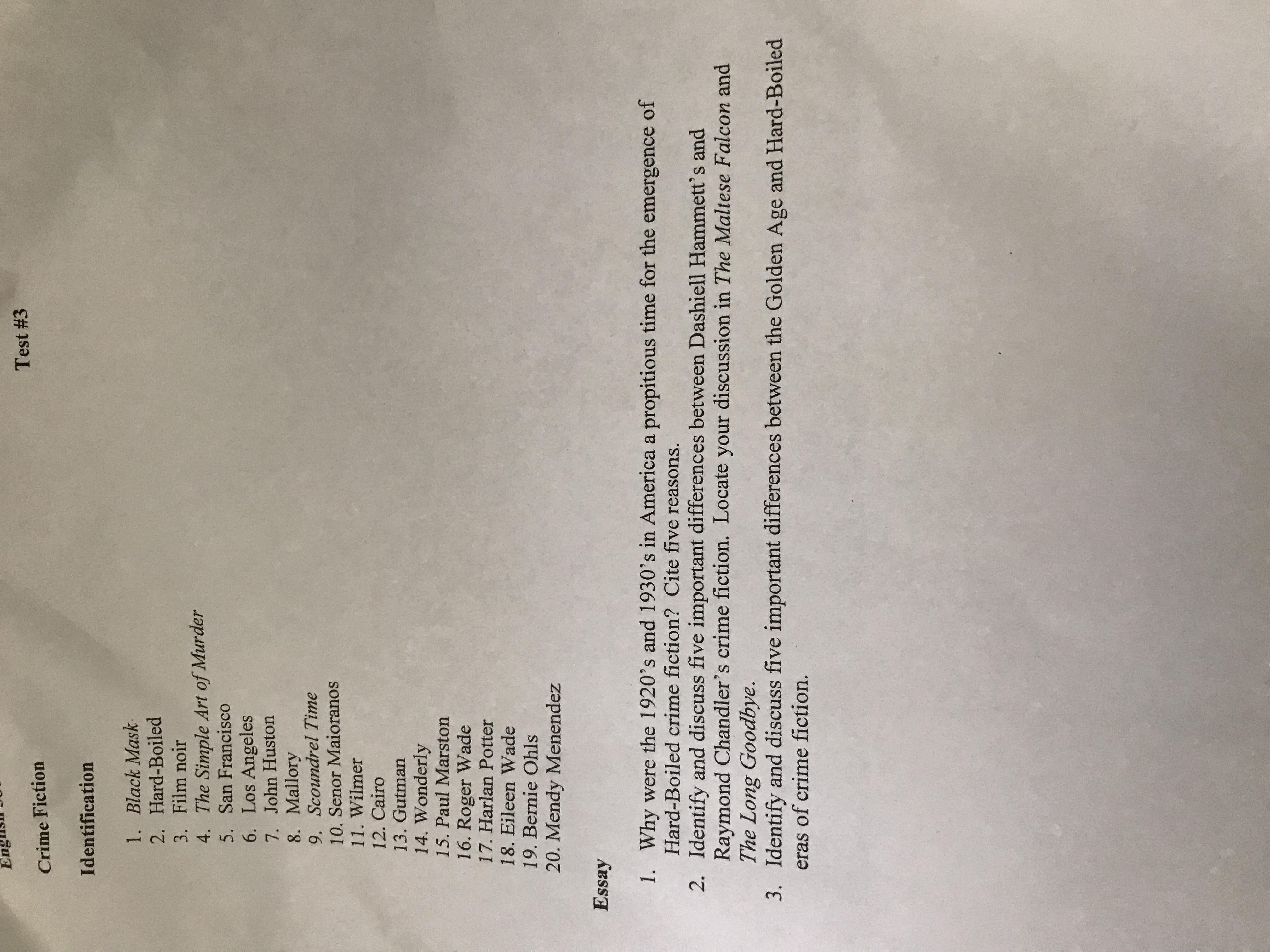 Answer all the question in the picture, you need answer the question through "The Maltese Falcon" by Dashiell Hammett and " The Long Goodbye" by Raymond Chandler.