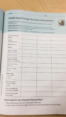 credit Card/Charge Account Comparison