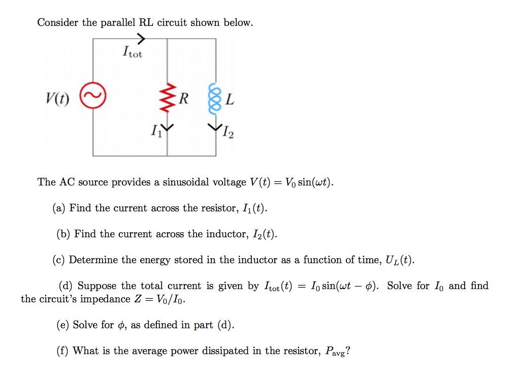 Consider the parallel RL circuit shown below. The AC source provides a sinusoidal voltage V(t) 2 V0 sin(wt).