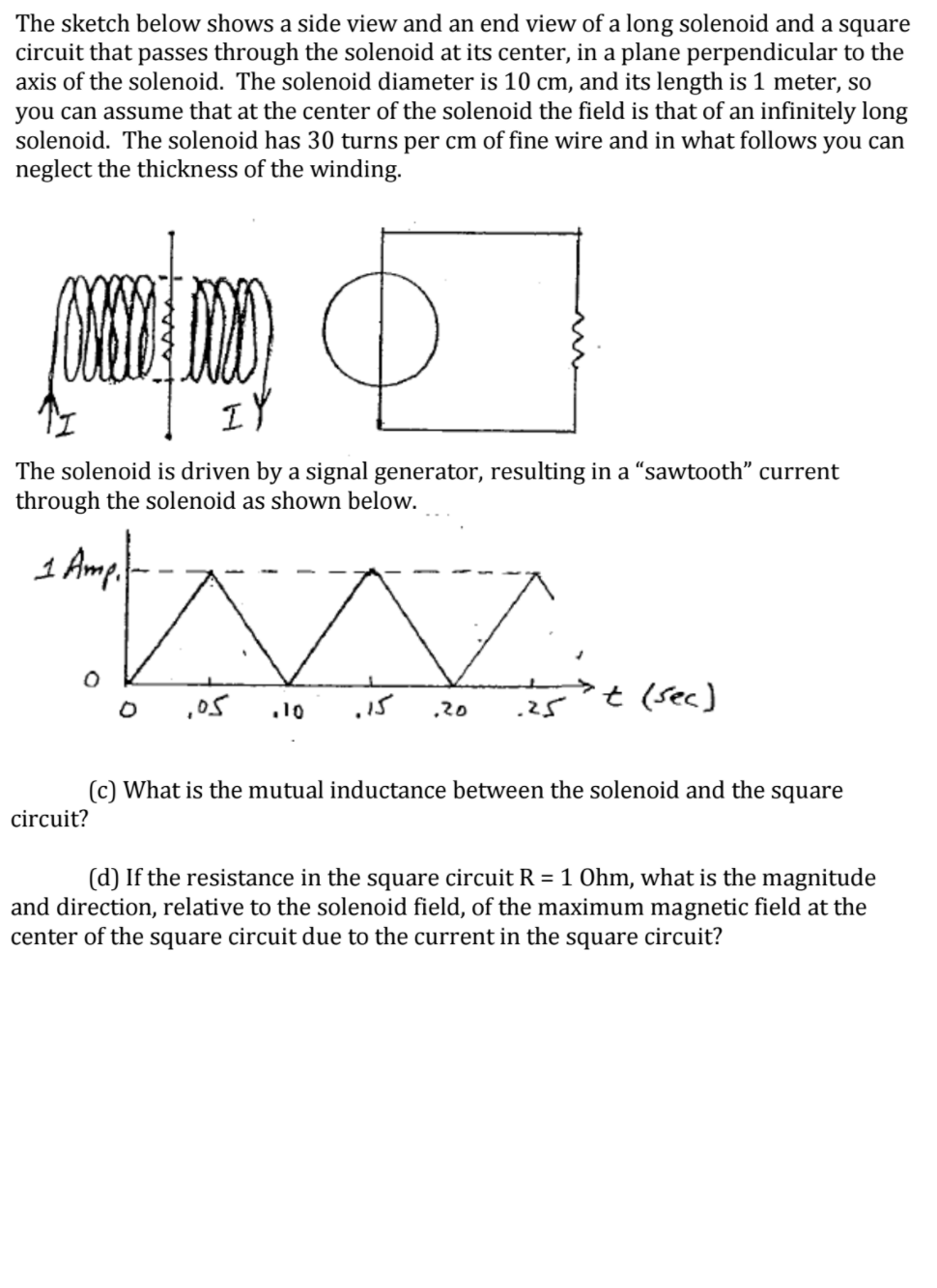 through the solenoid as shown below. _‘ (c) What is the mutual inductance between the solenoid and the square