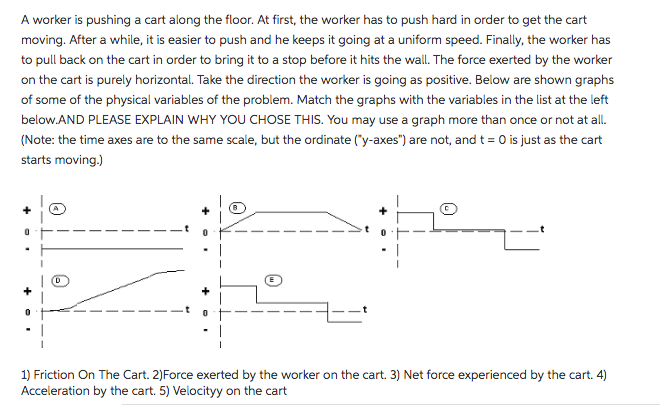 on the cart Is purely,r horlrontal. Take the direction the worker is going as positive. Below are shown graphs
