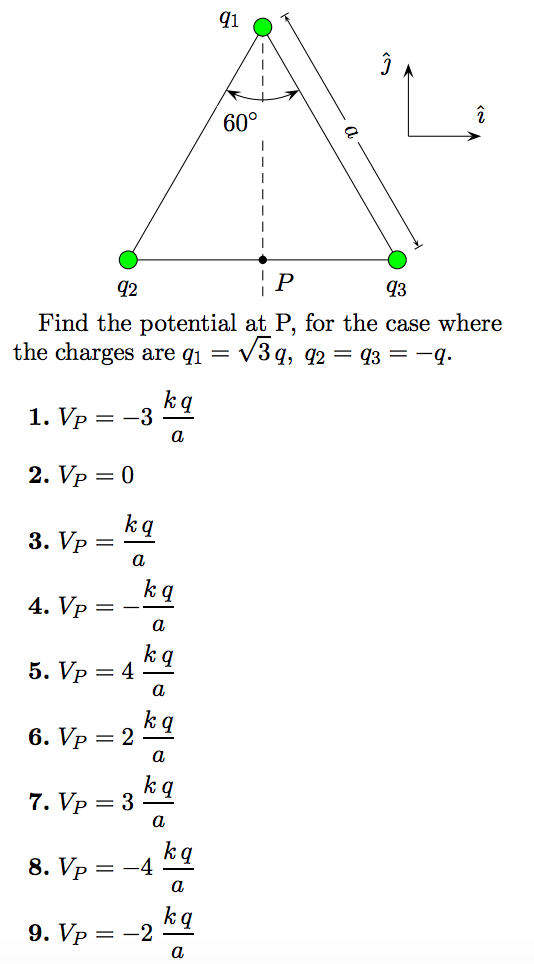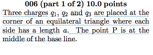 the charges are q1 = fig, (12 = Q3 = —q. k