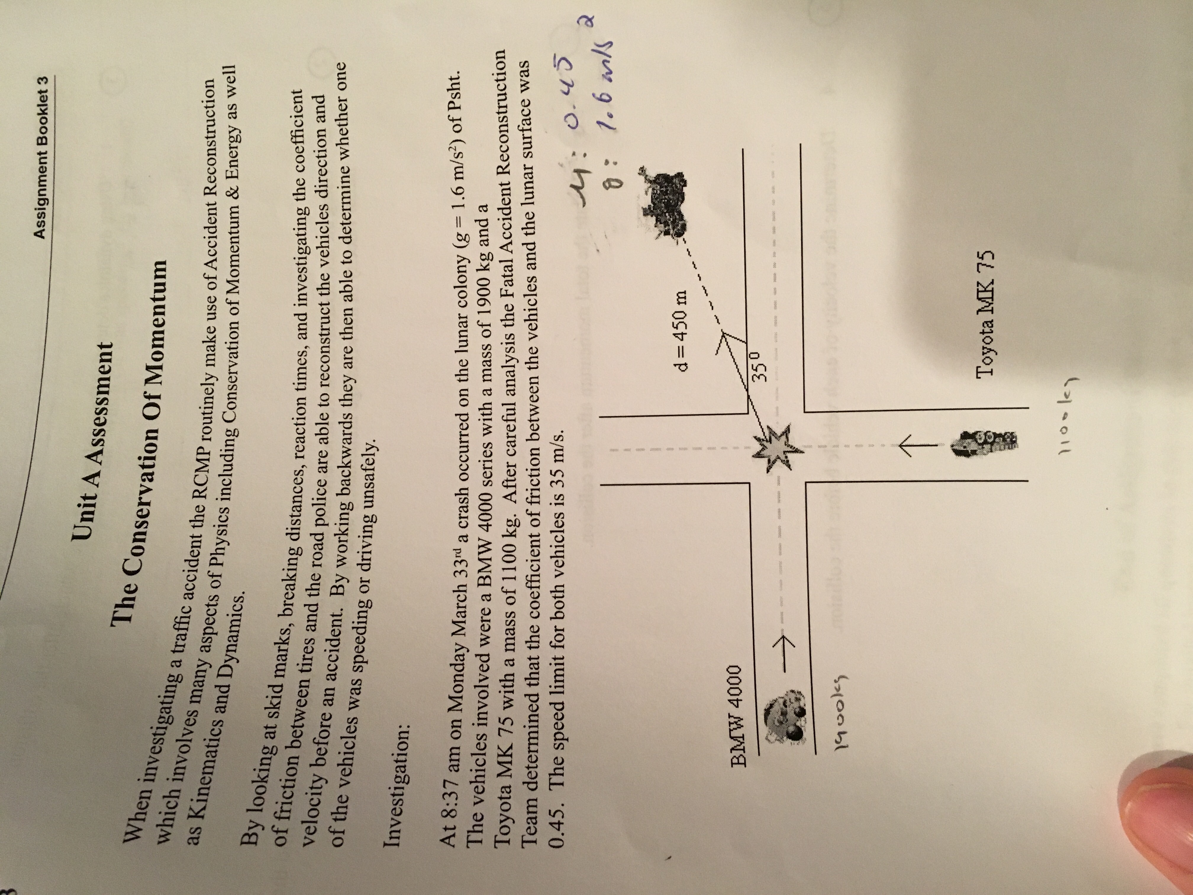 4) determine the velocity of each vehicle before the collision