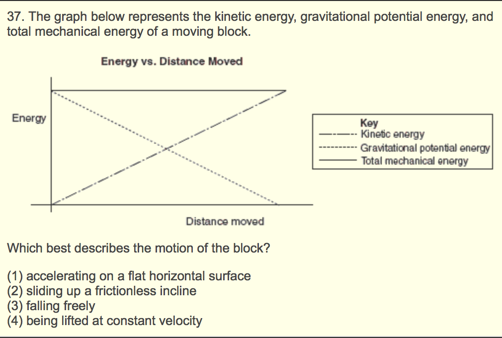 37. The graph below represents the kinetic energy, gravitational potential energy, and