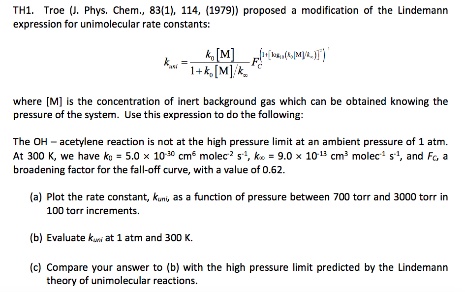 TH1. Troe (J. Phys. Chem., 83(1), 114, (1979)) proposed a modification of the Lindemann