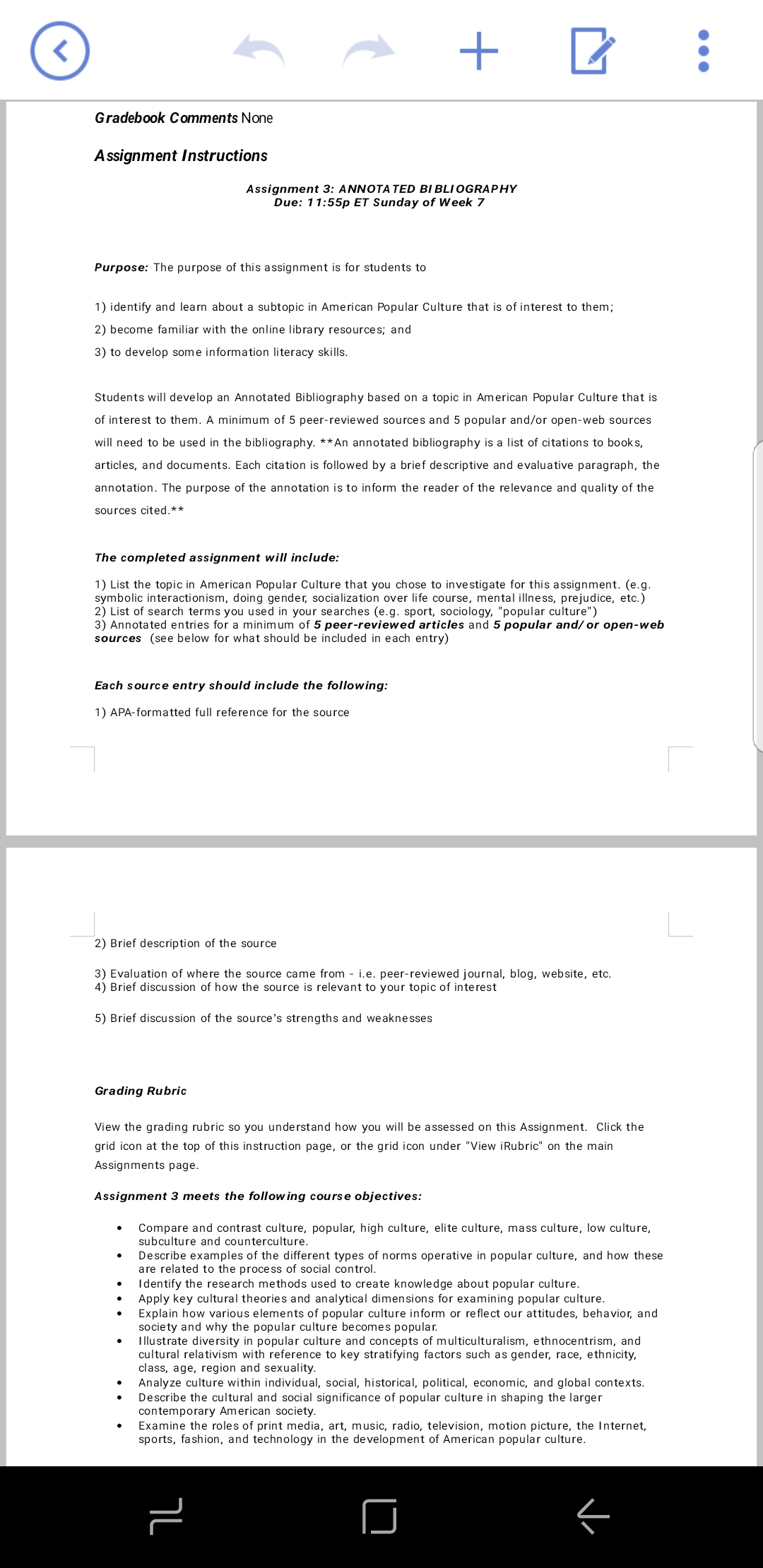 \ Gradebook Comments None Assignment Instructions Assignment 3: ANNOTA TED Bl BLl OGRAPHY