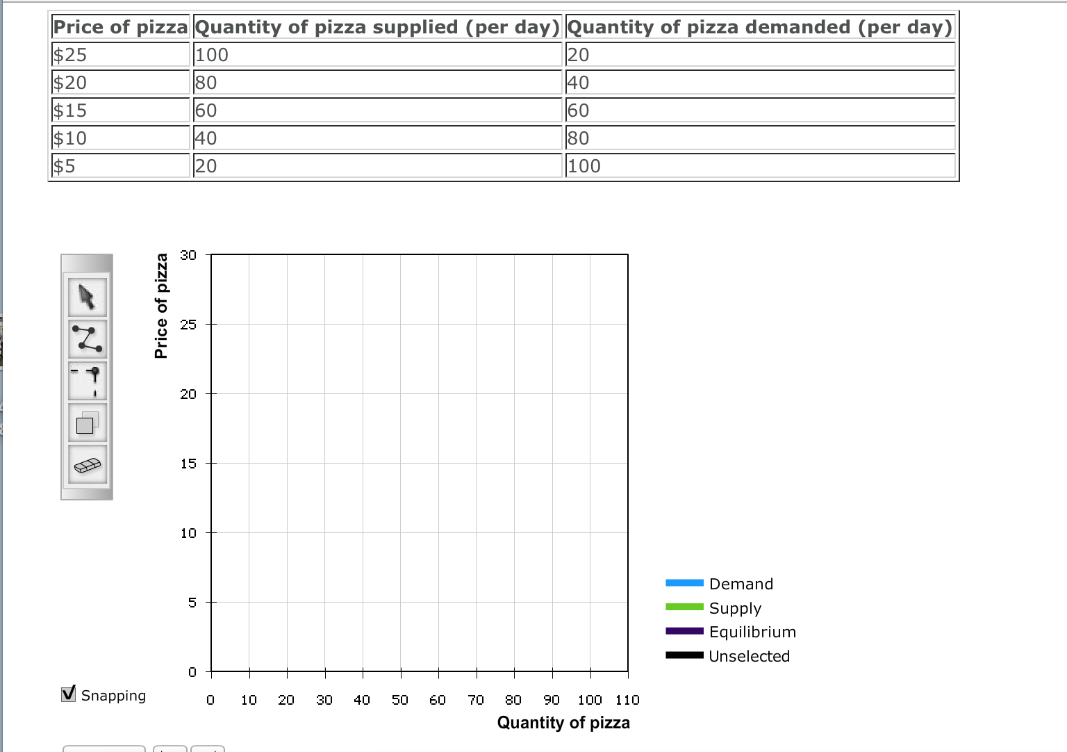 Price of pizza Quantity of pizza Supplied (per day) Quantity of pizza demanded (per day)