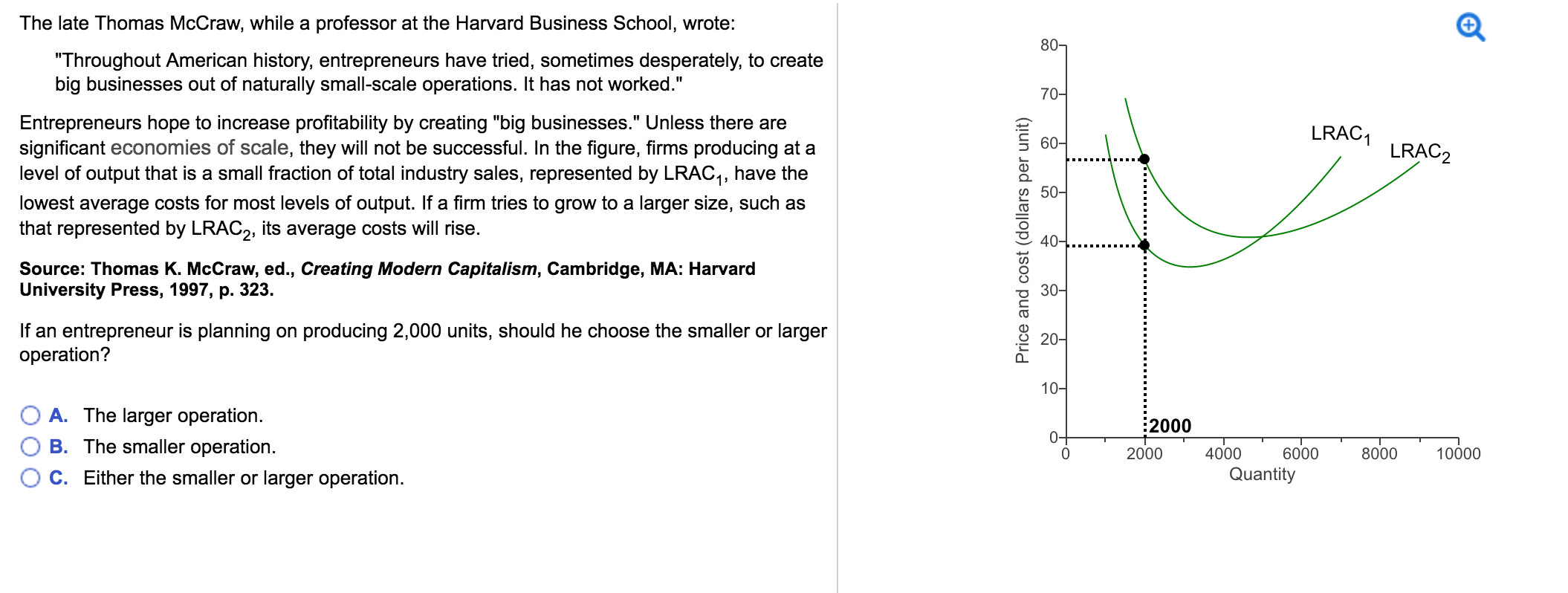 University Press, 1997, p. 323. If an entrepreneur is planning on producing 2,000 units, should he choose the smaller or larger