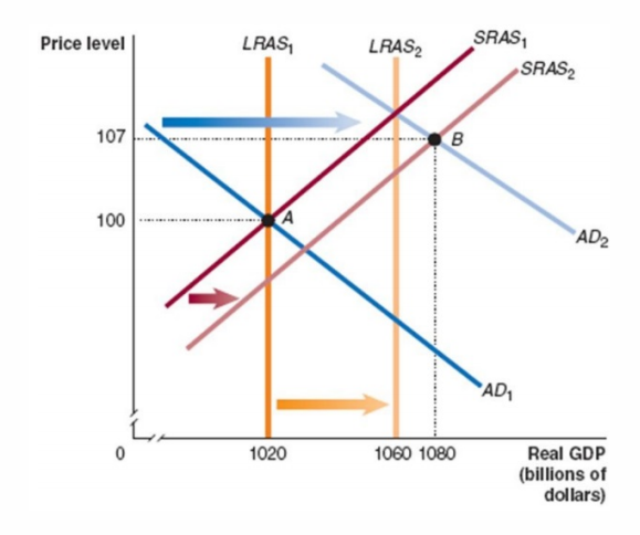 a)Given that the economy has moved from A to B what would be the appropriate fiscal policy to achieve potential GDP and why?