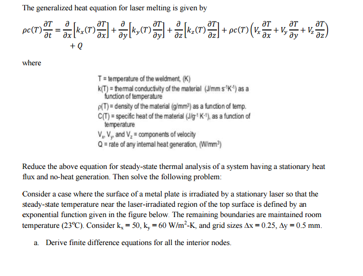 Reduce the above equation for steady-state thermal analysis of a system having a stationary heat flux and no-heat generation. Then solve the following problem: