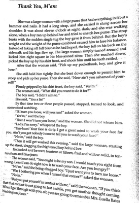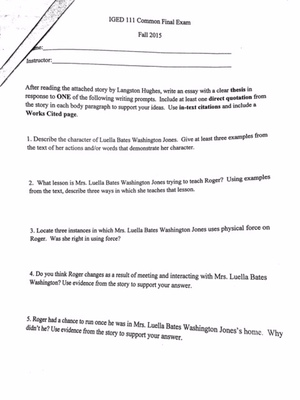 read the two and a half pages of the story and then follow the instruction written in the questions paper about writing an essay (4 paragraphs) MLA style. Please do ask me if u have question about anything, don't use so advanced words, and please mention the the character, and the name of the story at the beginning