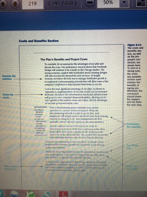 Take a look at the example proposal, "Concept Proposal for Drone-Based Security at Salisbury College" beginning on page 227. Discuss what you believe the proposal does well and not so well. In what ways, for example, does it address four areas of proposals (current situation, project plan, qualifications, & costs and benefits)? As a reader in what areas would you like more information? Less information? Lastly, compare this proposal to the "Growth and Flexibility with Telecommuting" proposal, which begins on page 207, continues on page 209, 212-217, and concludes on page 219.