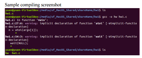 3.You can use the gcc command to compile the program. See the sample screenshot below. (Example 1 and 2)