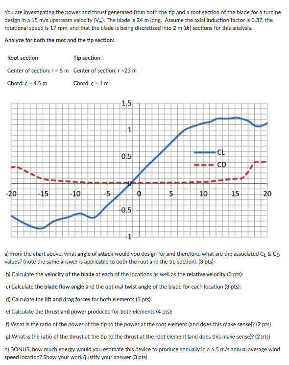 rotational speed is 1? rpm. and that the blade is being discretized into 2 n1 ldr} sections for this analysis. Analyaefirrboththerootand thetip section: Root section Tip section