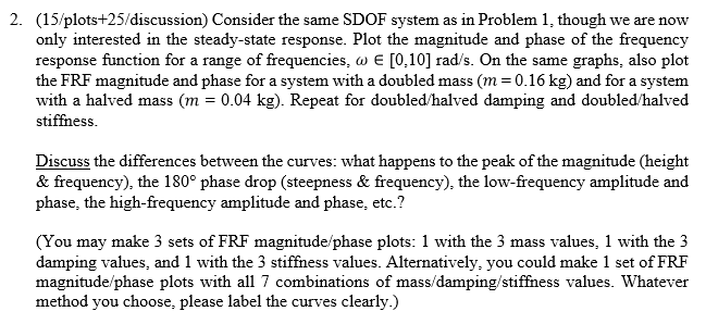 1. {lflfplots+lflfdiscussion) lConsider a SDDF spring—mass—damper with m = fl.fl3 kg, 12' = flfl4