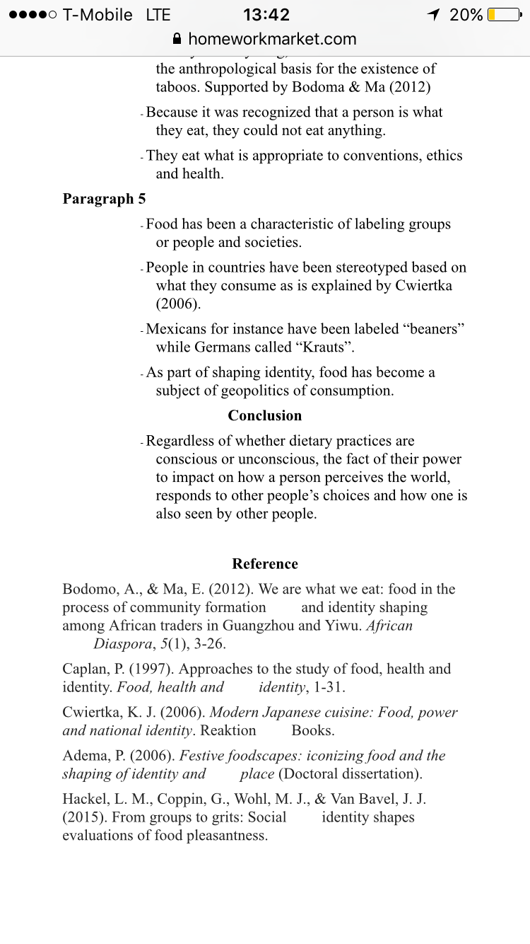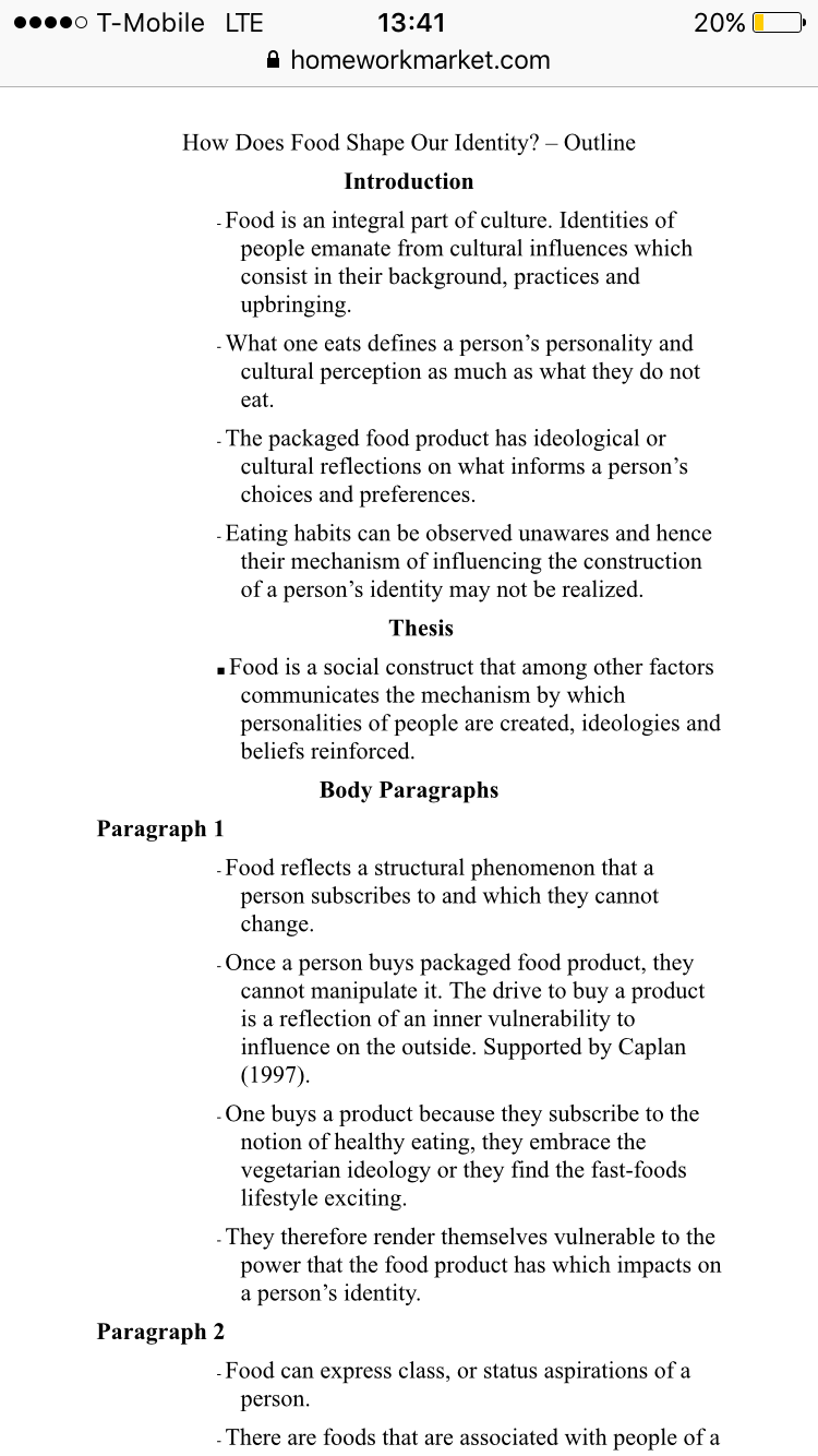 Hi there , I need a 8-9 pages essay about how does food shape our identity ?Â