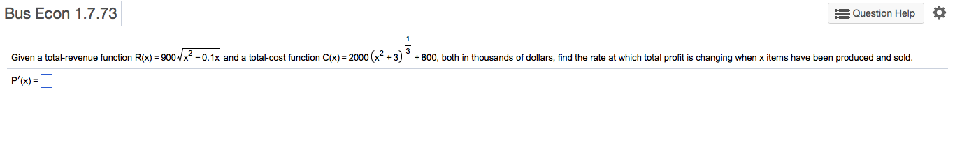2000x2+313+800​, both in thousands of​ dollars, find the rate at which total profit is changing when x items have been produced and sold.