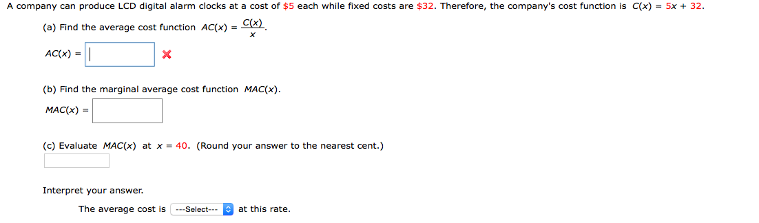 (b) Find the marginal average cost function MAC(x).