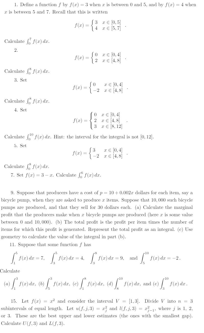 items for which this profit is generated. Represent the total profit as an integral. (c) Use geometry to calculate the value of the integral in part {b}. 11. Suppose that some function f has 5 5 8 ll]