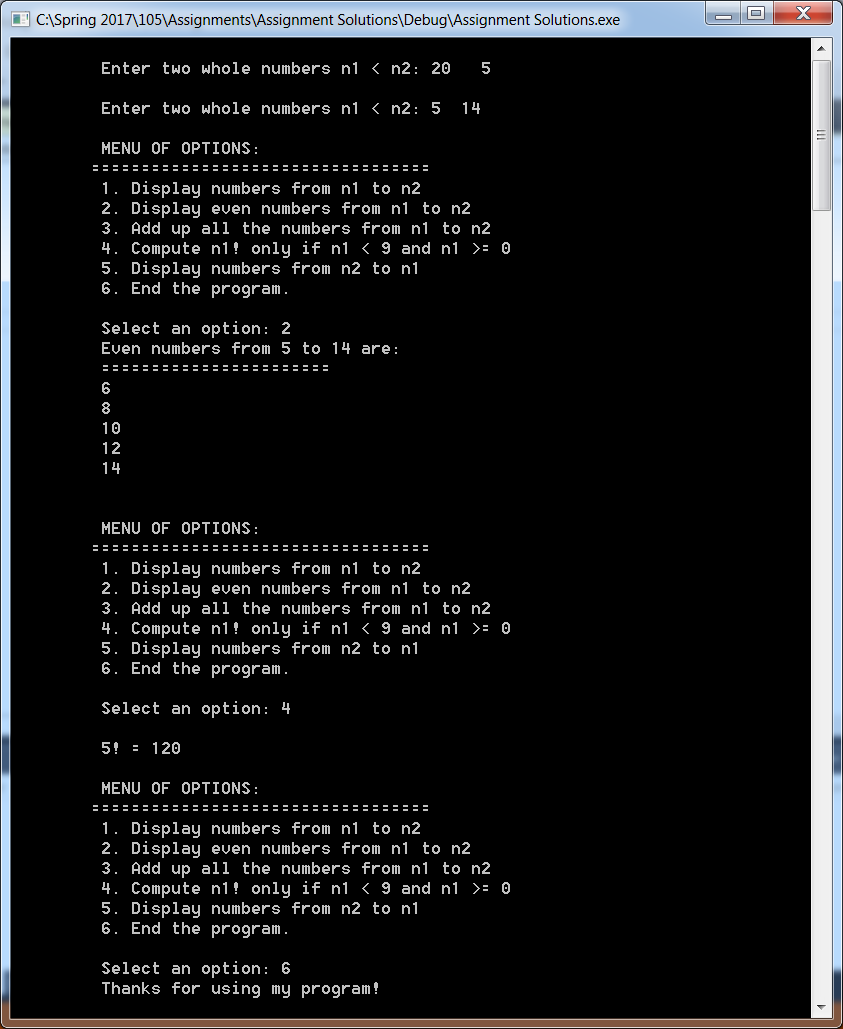 // Option-5: Display numbers in reverse order, n2 to n1.                                 Â