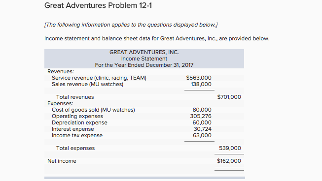 Great Adventures Problem 12-1 Hhe following lnl‘bfmeflon applies to the questlms deployed below]