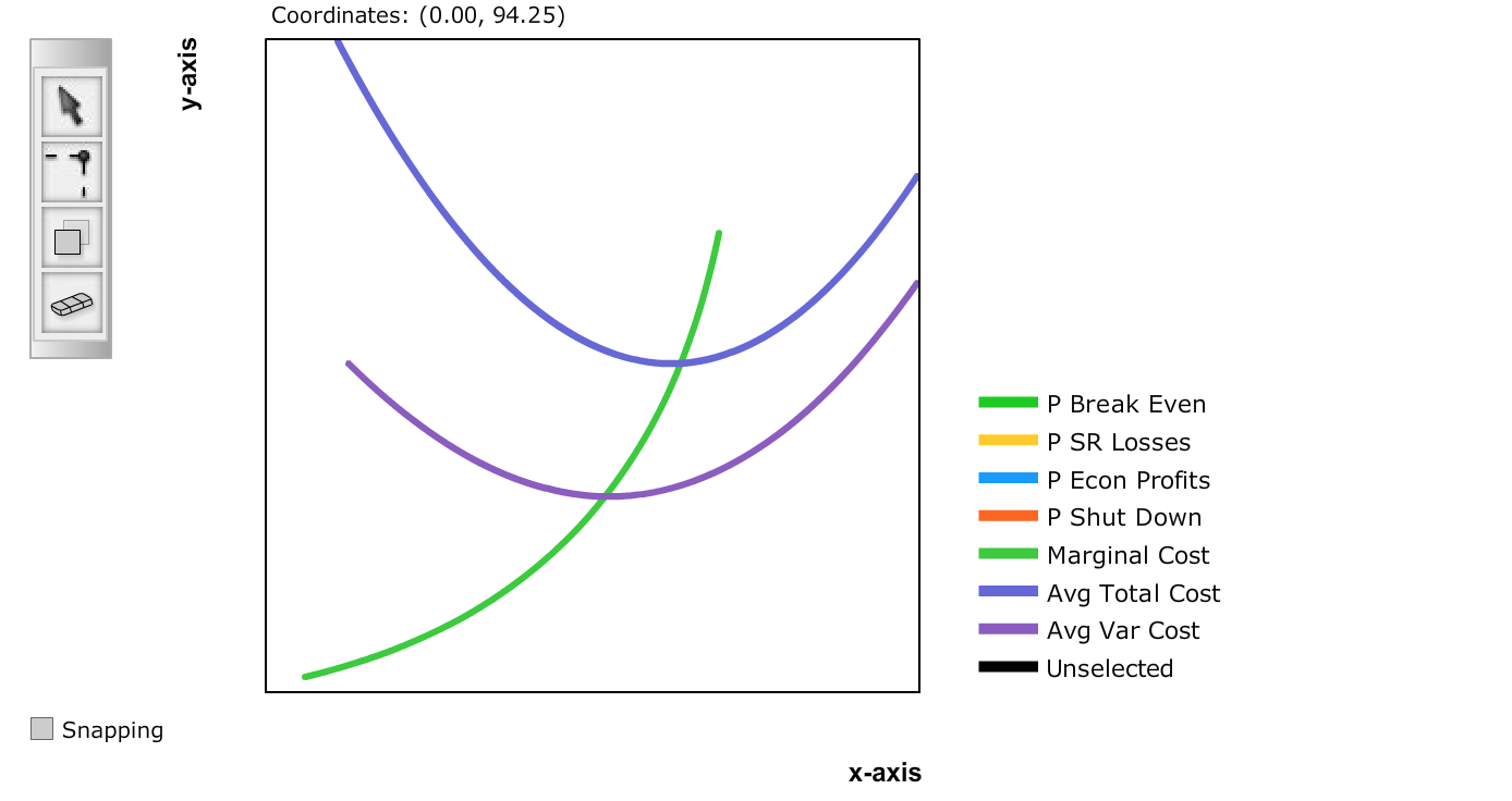 Part 3. Use the double-drop line tool to show a price-quantity combination that would yield negative economic profits for the firm, but where the firm would stay in business in the short run and label it P SR losses.Â