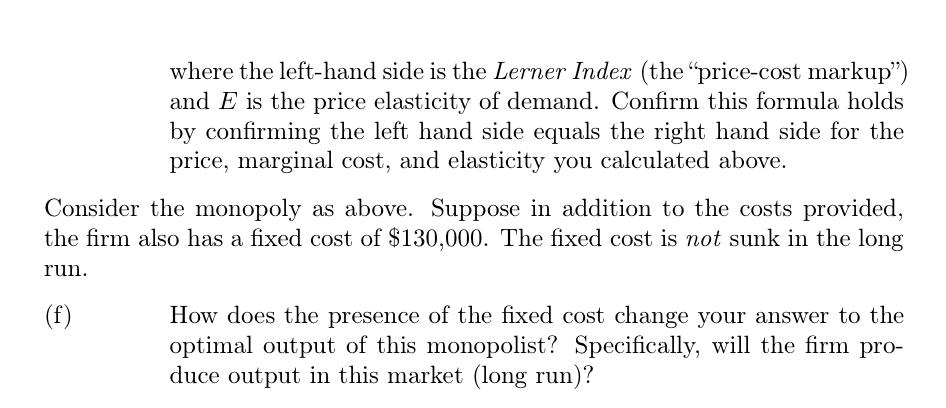 tion of the demand? Recall the relationship between the price a monopolist charges and the elasticity: