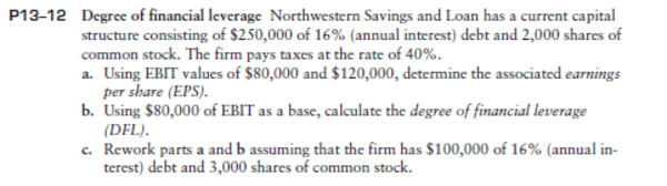 Complete the following problems from Chapters 13-16 in Principles of Managerial Finance: Long-Term and Short-Term Financial Decisions: P13-7; P13-12; P14-9; P15-3; P15-5; P16-20