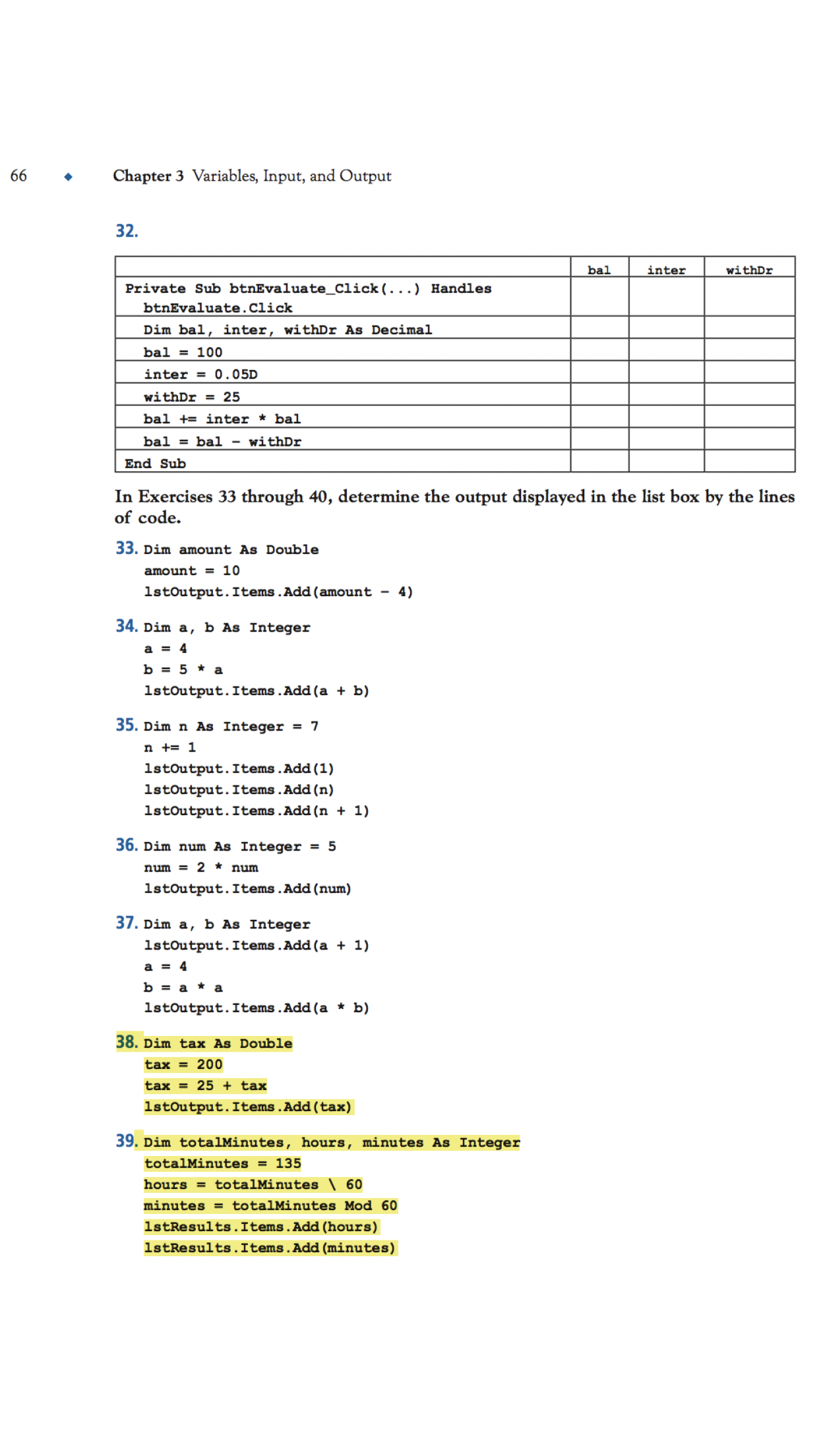 Directions:Â Complete exercise 38 on page 66, exercise 7 on page 85, and exercise 28 on page 86 of your textbook. A MS Word file that contains your name, chapter, exercise number, and the answer for each exercise.