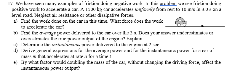 to accelerate the car? Find the average power delivered to the car over the 3 s. Does your answer underestimates or