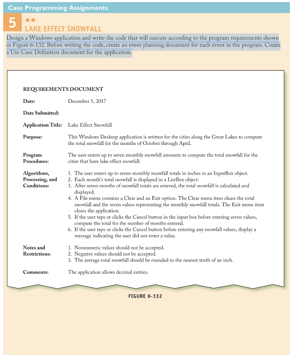 Design a Windows application and write the code that will execute according to the program requirements shown in Figure 6-132. Before writing the code, create an event planning document for each event in the program. Create a Use Case Definition document for the application.