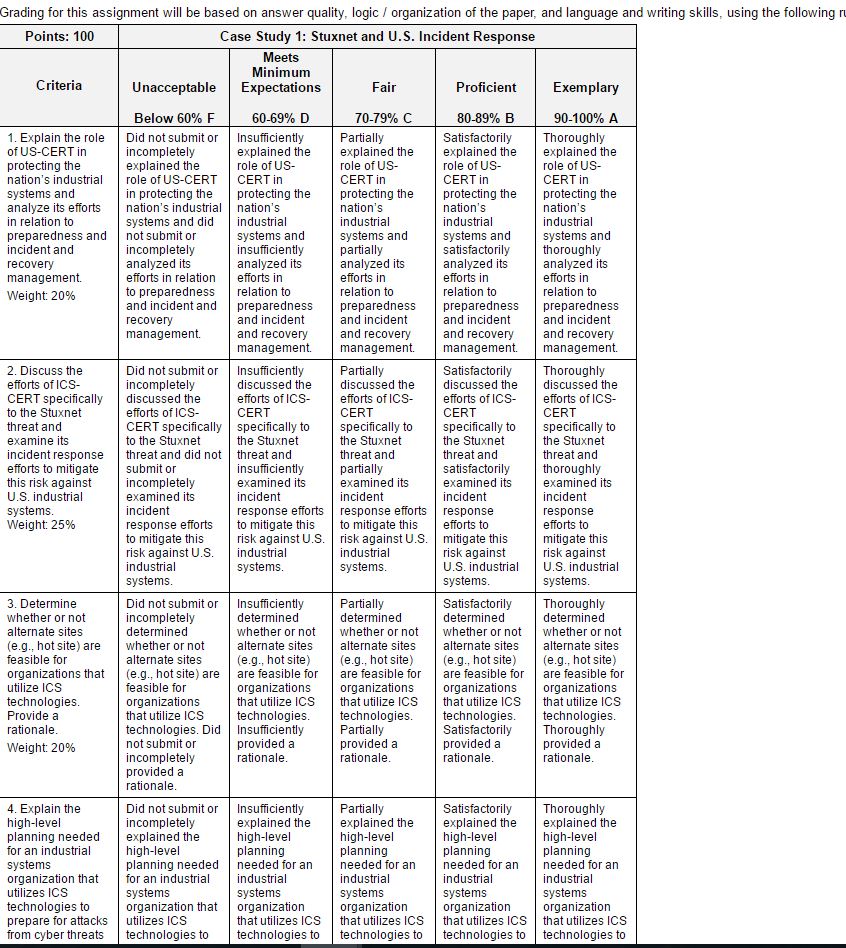 Read the article titled “When Stuxnet Hit the Homeland: Government Response to the Rescue,” from ABC News, located at http://abcnews.go.com/blogs/headlines/2012/06/when-stuxnet-hit-the-homeland-government-response-to-the-rescue/ and consider this threat in terms of incident response and recovery procedures.