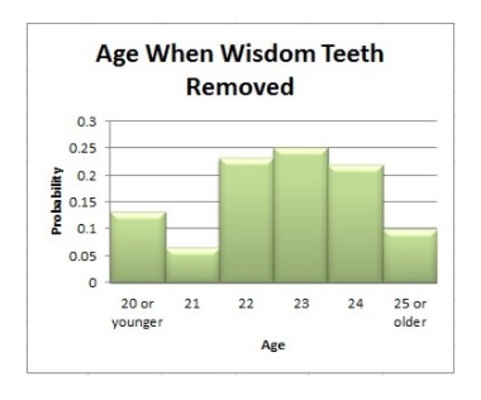 Use the probability histogram below. According to the distribution, what is P(Age = 23)