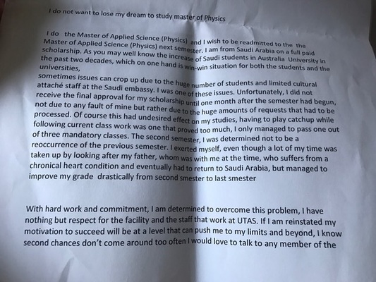 I have meeting tomorrow with the university and I was write leeter for them why I couldn't pass the courses and get abad score