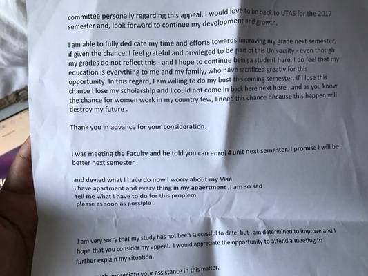 I want you read my letter then write note like steps whay I couldn't pass depend on my reason i had say it in my leeter the second thing write step how can i get well. And how can i will be petter next semester and successful and write acomment i need the chance to coplate study