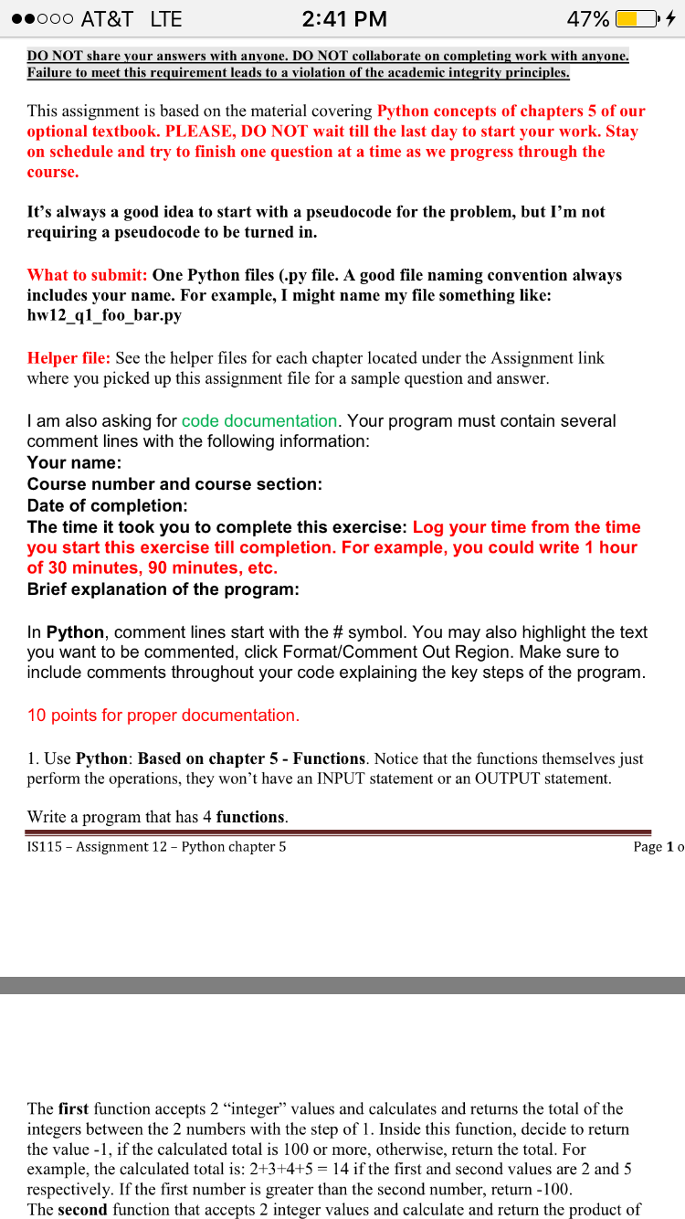Hi I need help with doing this python programming! Attached is the assignment. You do not have to do the code documentation, that will be completed by me. Thank you!