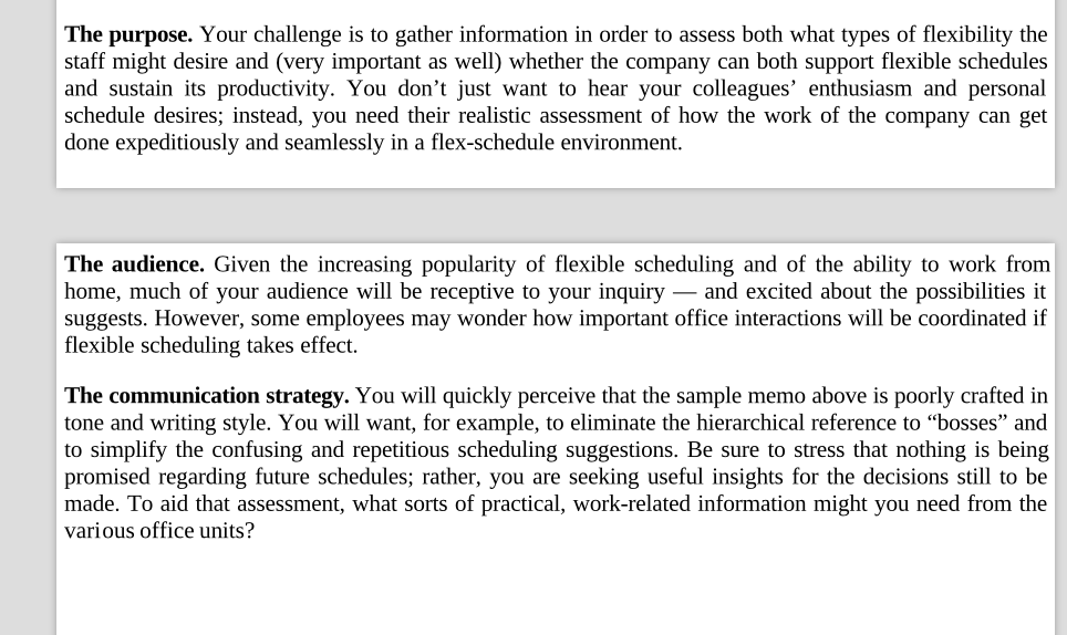 While following the prompts and guidelines on pp. 102-103, keep in mind the demands of this kind of email genre: